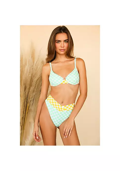 Lined. Underwire Silhouette. Adjustable Straps. Adjustable Back Ties. Checkered Print.