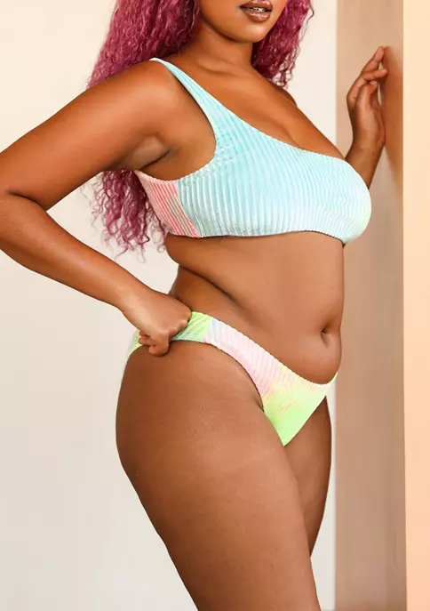 Lined. One shoulder. Adjustable back ties. Elastic band. Velvet ribbed. Fit Guide: Hannah is wearing Size L. Model Measurements: Height: 5’8″ΓΒ Waist: 32″ΓΒ Hips: 44″ΓΒ Bust: 37″