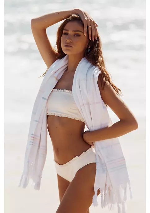 The Camila top features mini ruffle skirting on the top and bottom of a classic bandeau.