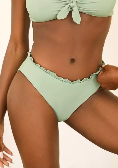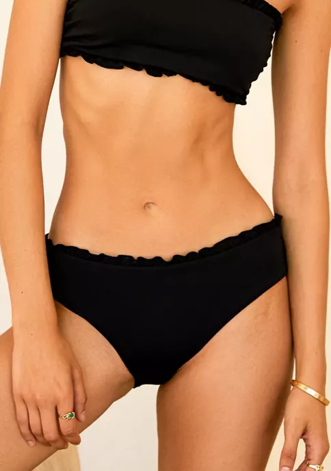 The Kiara bottom features a mini ruffle skirting at the hip line, and a full coverage booty.