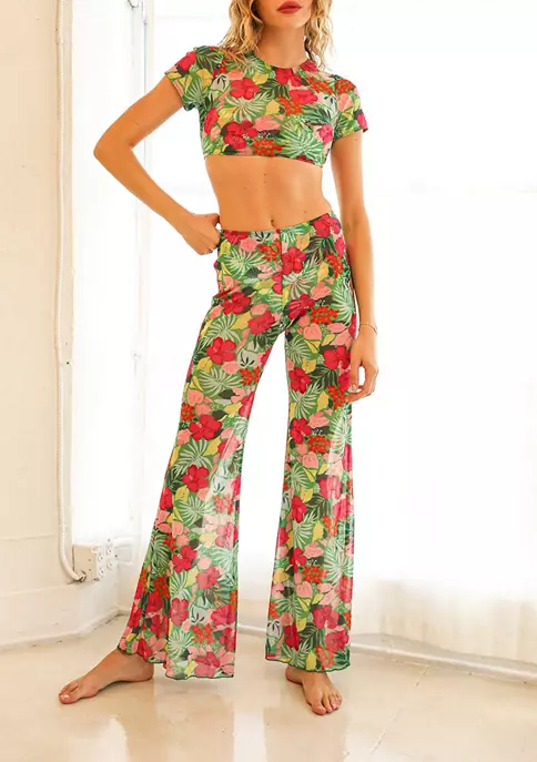 Elastic band. Flared leg. Sheer. Fit Guide: Olivia is wearing SizeΓΒ S. Model Measurements: Height: 5’10″ΓΒ Waist: 24″ΓΒ Hips: 33″ΓΒ Bust: 30″