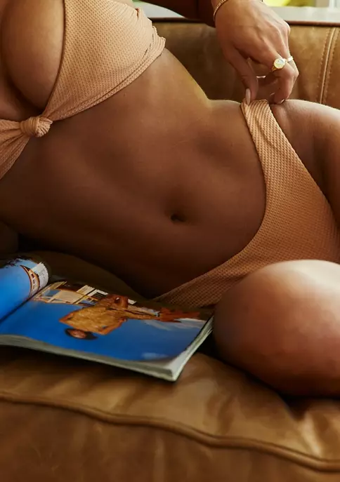 Double Lined. Elastic waistband. Thong style. Low rise. Waffle Fabric. Fit Guide: Madisyn is wearing Size S. Model Measurements: Height: 5’8″, Waist: 24″, Hips: 35″, Bust: 32″.