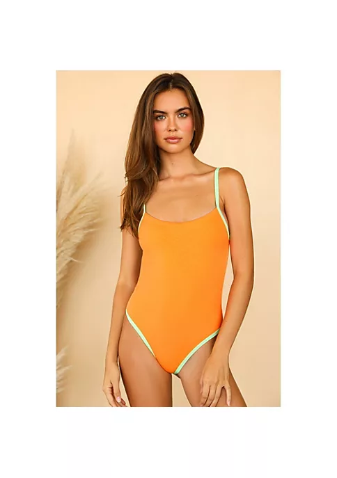Lined. Scoop Neck. High Leg Cut. Moderate Coverage. Adjustable Straps. Open Back.