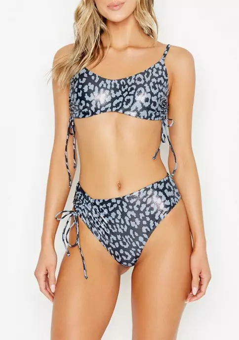 Lined. Medium coverage. Rouched side ajustable tie. Fit Guide: Sarah is wearing Size L. Model Measurements: Height: 5’8″, Waist: 23″, Hips: 34″, Bust: 32B.