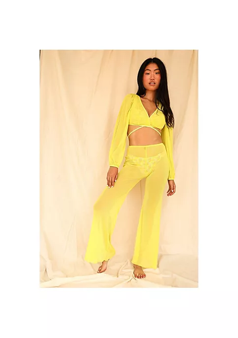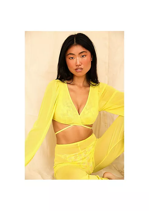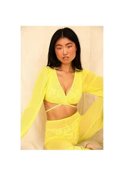 Power Mesh- Long Sleeve Crop Top- Crossing Midriff Ties in the Back- Sheer.