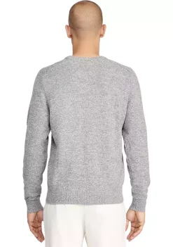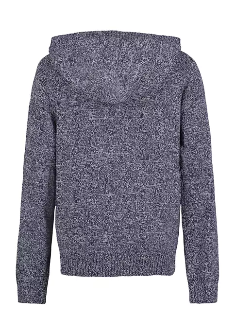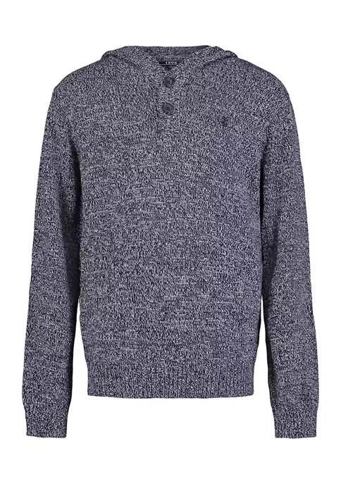 Knit with marled yarns, this hooded sweater is an adorable sporty option for warm-up dressing.