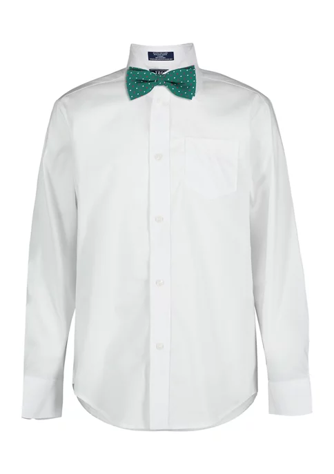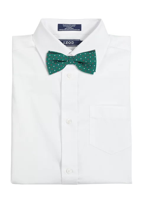 Put your little boy’s look together with this handsome button-down stretch poplin shirt and coordinating bowtie from IZOD.