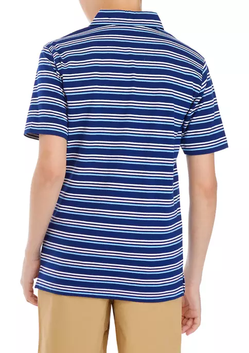 A style he can count on from school to supper, this multi-striped Polo shirt from IZOD is reliably handsome with a crisp collar and logo embroidery at the chest.