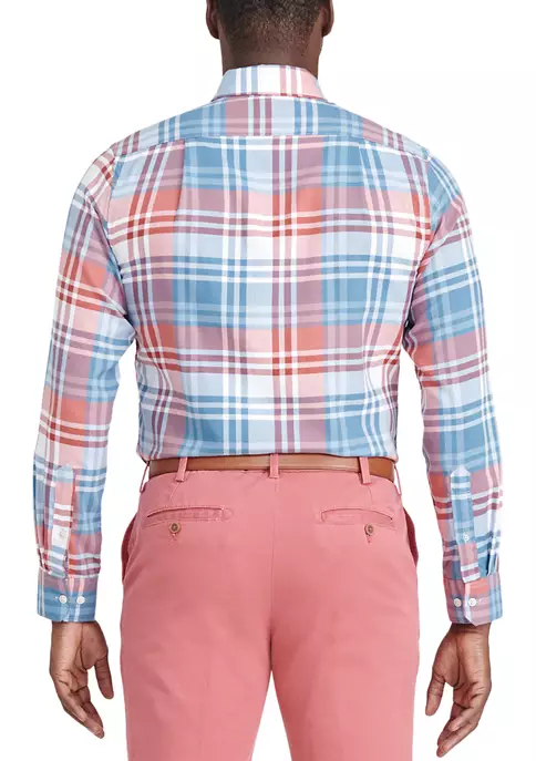 A bold grid pattern draws attention to this button-down shirt from IZOD.