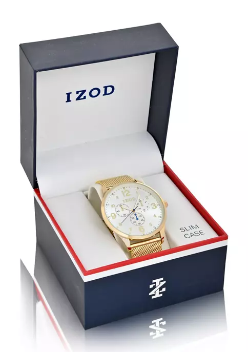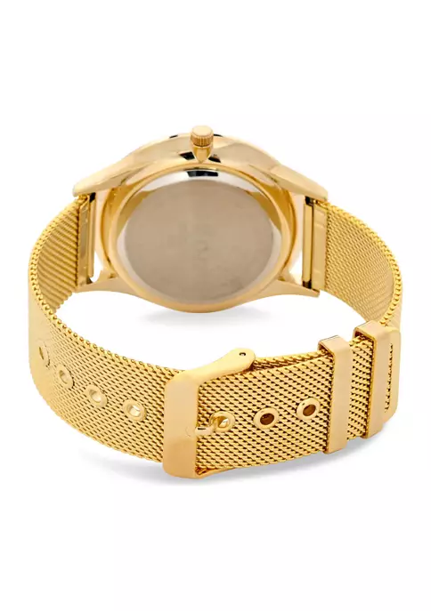 goldtone mesh bracelet, buckle closure, Silver 3 faux subdial dial
