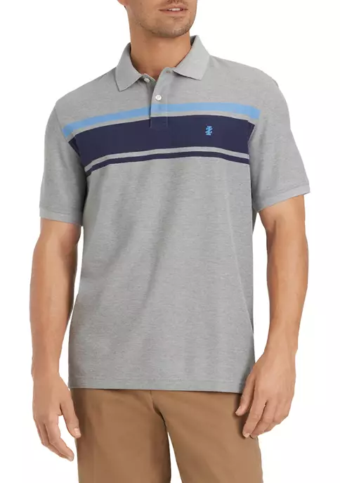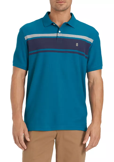 A chest stripe adds simplistic dimension to this spread collar-accented knit polo shirt from IZOD.
