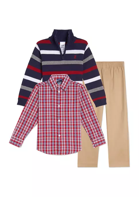 1/4-zip mock-neck sweater with solid ribbed cuffs and hem