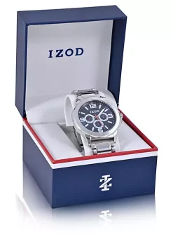 Deals 🤩 IZOD Silvertone Bracelet ⌚ Watch w Red White Blue Accents 😍